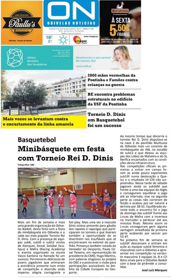 Torneio Rei D. Dinis, organizado pelo Odivelas Basket Clube, em destaque na capa da edição 252 do Odivelas Notícias.